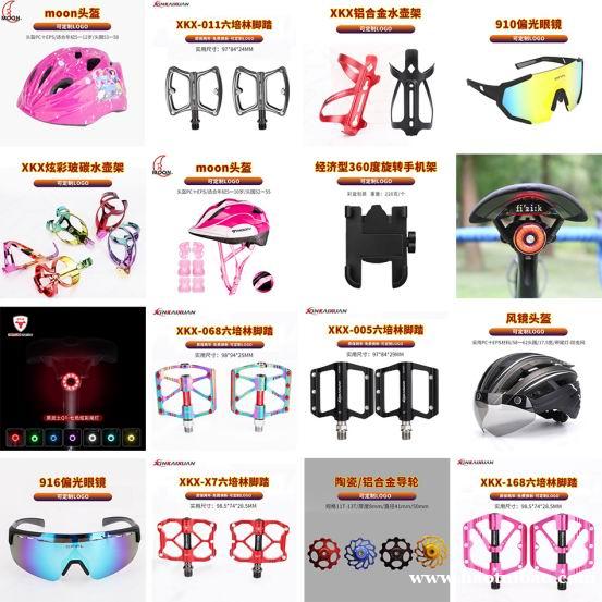 产品介绍:本场专业成产成人头盔/儿童头盔/自行车脚踏板/自行车车灯等自行车配件产品,头盔适用于自行车,电动车,滑板,溜冰时可用,可对头部进行防护保护作用,各类型号的脚踏板适用于各个自行车,赛车上,厂家承接各种类型订单,欢迎前来询单问价。